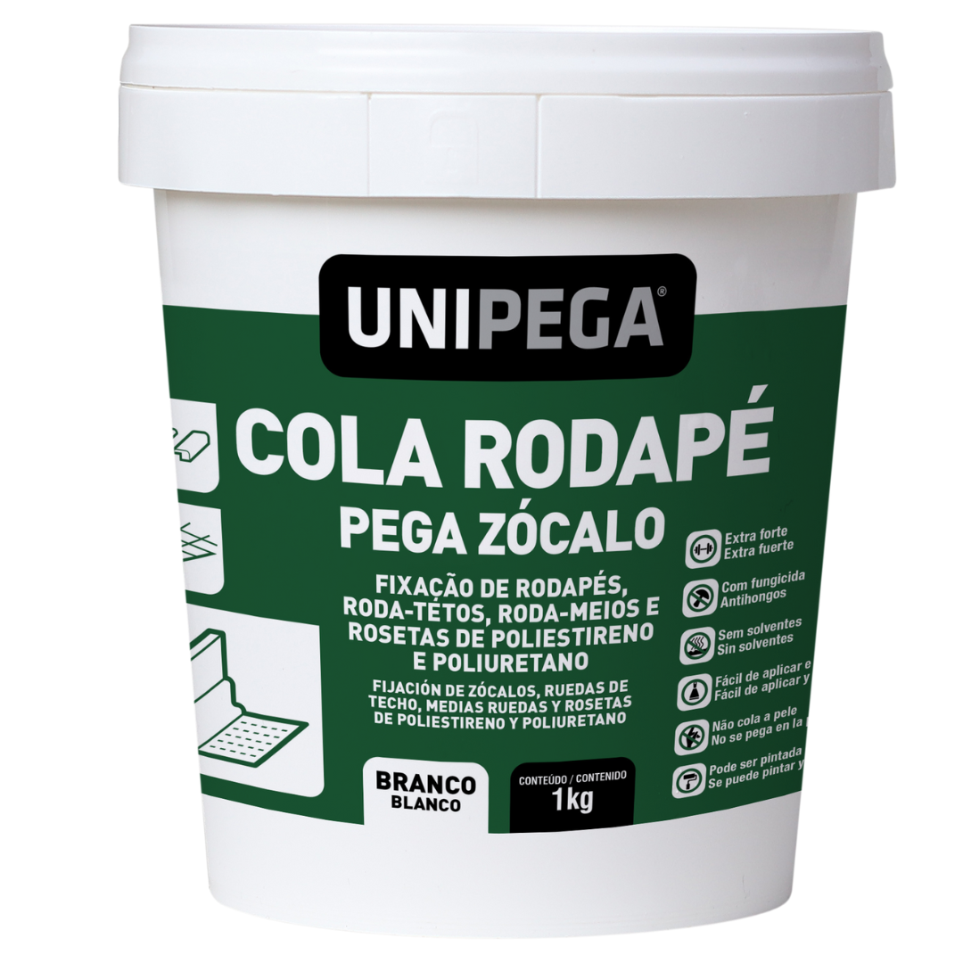 A Unipega Cola Rodapé é uma cola desenvolvida especialmente para garantir alta adesão e acabamento impecável em rodapés, roda-meios, roda-tetos e rosetas. Pode ser aplicada em uma grande variedade de substratos e oferece resistência, praticidade e segurança durante o uso.