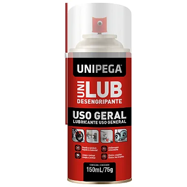 O seu grande aliado na proteção contra ferrugem, corrosão, redução do atrito e desgaste metálico. O Unipega Unilub é um spray desengripante que ajuda a prolongar a vida útil dos metais, lubrificando por completo e diminuindo a necessidade de substituição das peças. A aplicação em spray é fácil e rápida e para mais precisão, faça o uso do prolongador que acompanha o produto. Mirar, apontar, lubrificar!