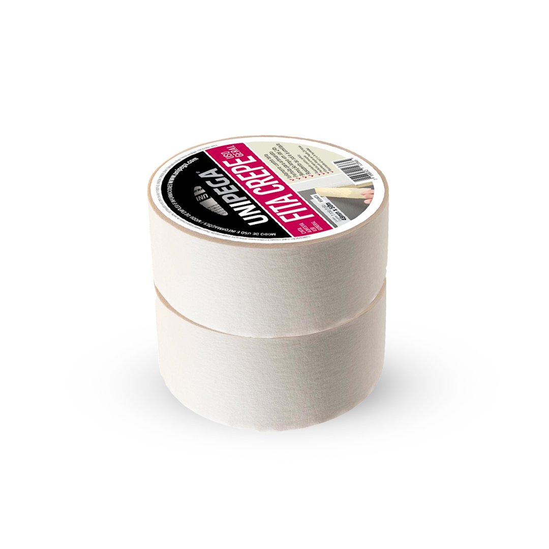 Fita autoadesiva de papel crepado saturado branco com adesivo a base de borracha natural e resinas, indicado para aplicações em geral, uso industrial, escolar e proteção. É o produto ideal para proteger, delimitar, fazer marcações, colagens e reparos temporários.